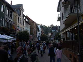 Praktischerweise führte dieser abschüssige Weg direkt ins Dorf, so dass man praktisch ohne Wendemöglichkeit vor einer zu niedrigen Durchfahrt stand und sich irgendwie rückwärts retten musste. Trotzdem, man mag es ja kaum glauben, erreichte der Bus mit allen Insassen mehr als rechtzeitig sein Ziel in St. Goar. |