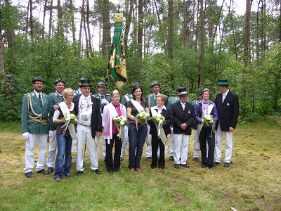 Nach einer kurzen Stärkung übernimmt das neue Offizierscorps um 9.15 wiederum das Kommando. Nach der Ehrung und dem Gedenken der verstorbenen Schützenbrüder marschiert man, begleitet vom Spielmanns- und Fanfarenzug Wettringen, sowie von dem Musikverein Friedensklang, zur Vogelstange am Wettringer Damm (K65), um den neuen König zu ermitteln.