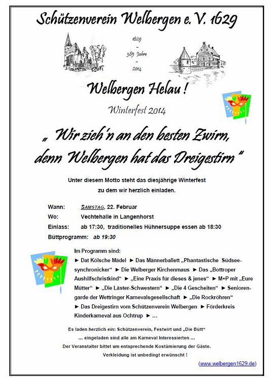 So lautet das diesjährige Motto der Welberger Bütt. Am Samstag, den 22. Februar ist es wieder so weit: