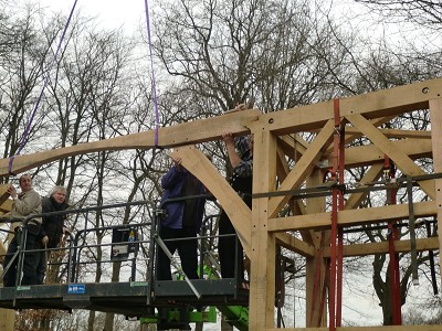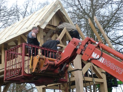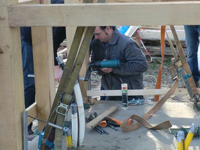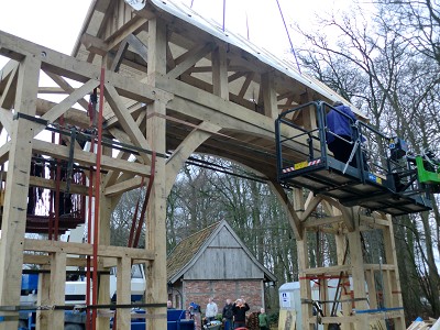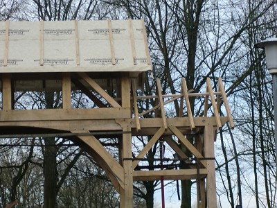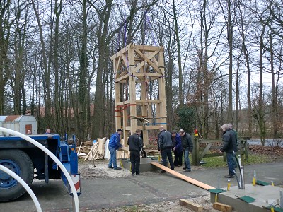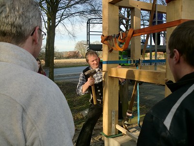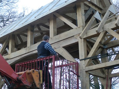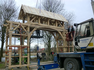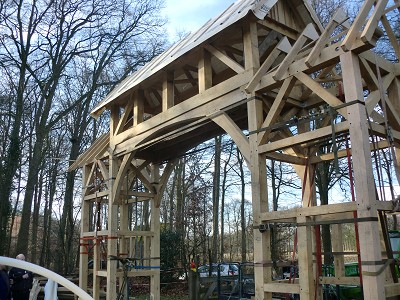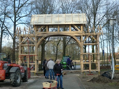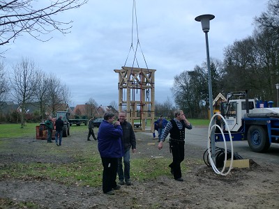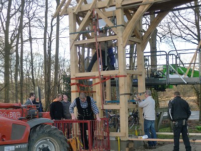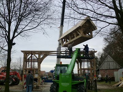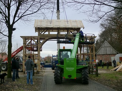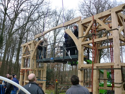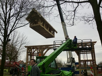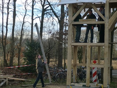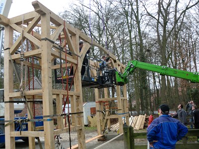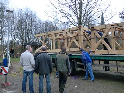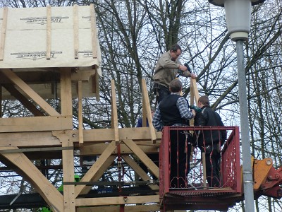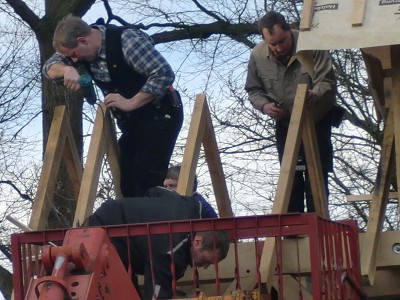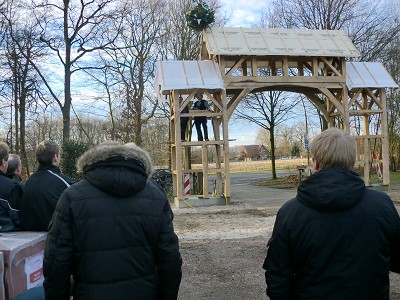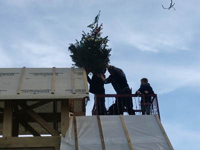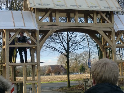 Aufstellen des Fachwerks für den neuen Bogen am Festplatz und Richtfest am 29. Dezember 2012