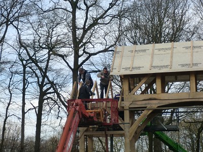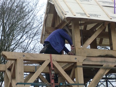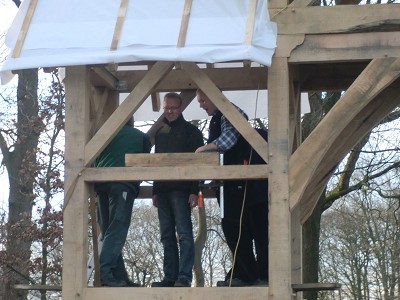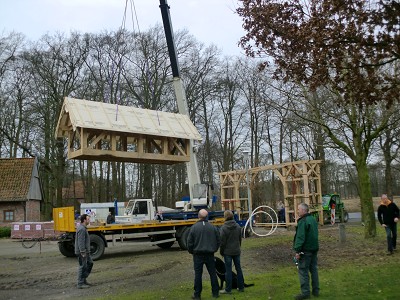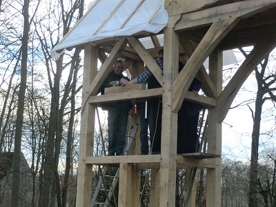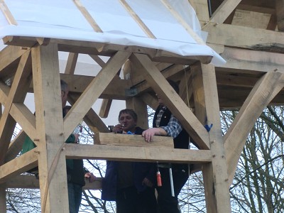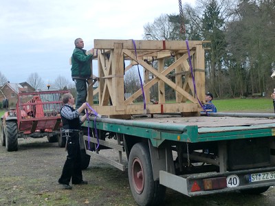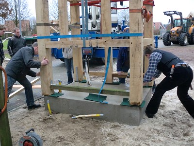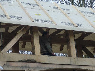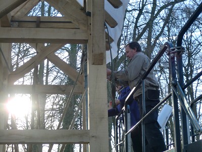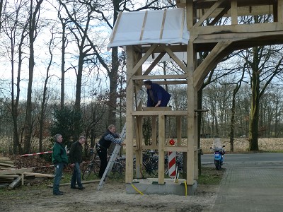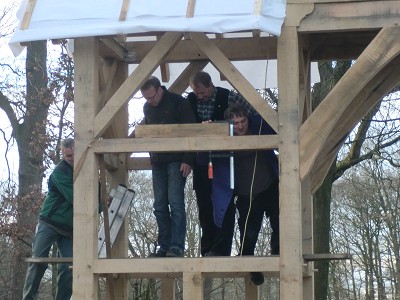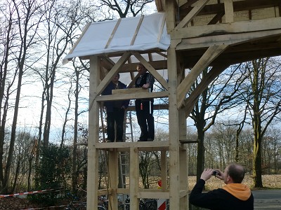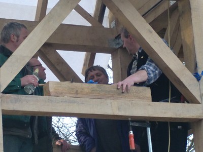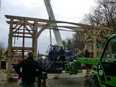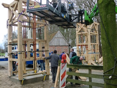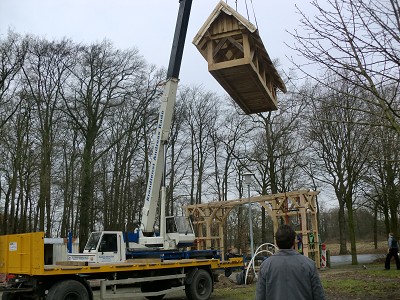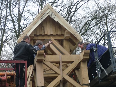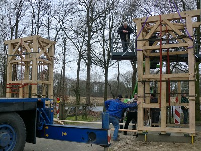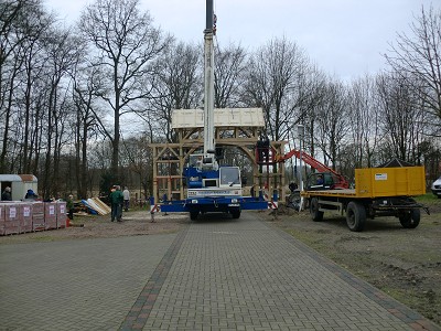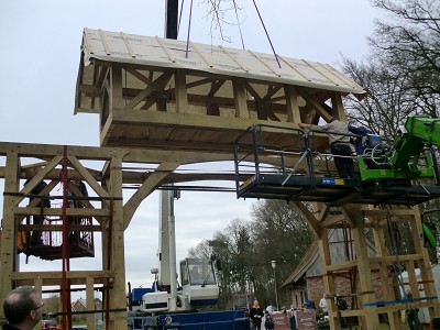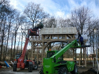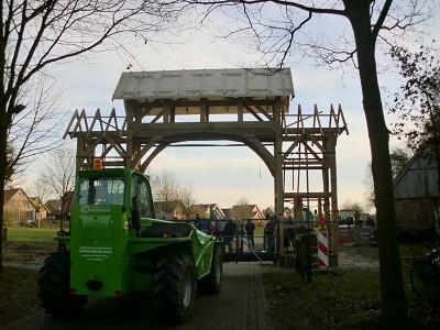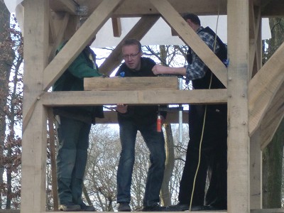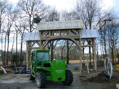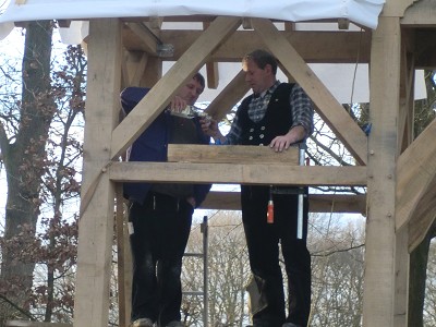 Aufstellen des Fachwerks für den neuen Bogen am Festplatz und Richtfest am 29. Dezember 2012
